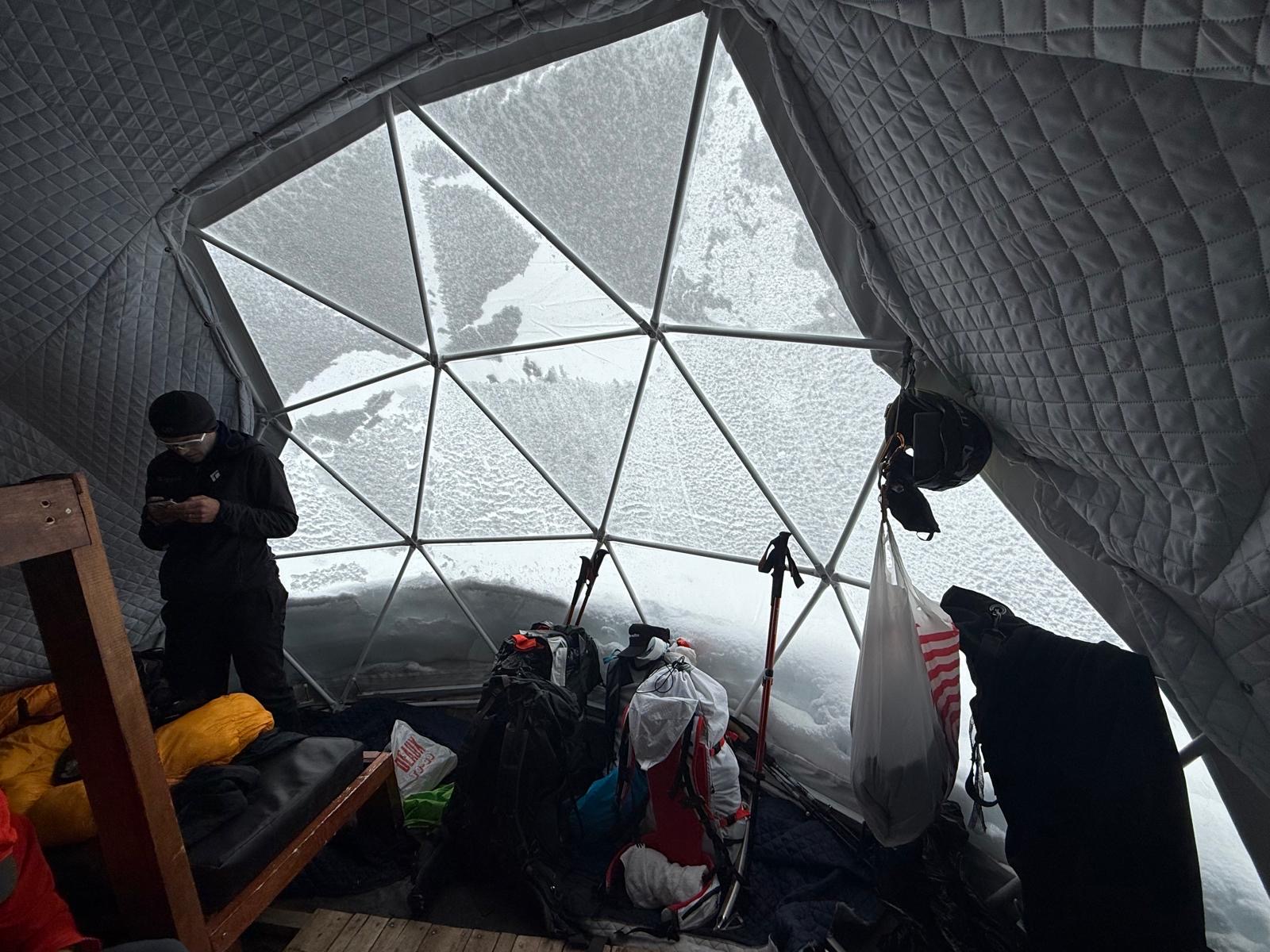 I knew the news wasn’t going to be good when it was 11:30pm and we still hadn’t heard anything from the guides. Sure enough, they came into our dome a little later and informed us the weather was terrible. Quite a bit of fresh snow with extremely low visibility and even more falling. They wanted us to go back to sleep, and they were going to wake us up if it cleared. 2am was the go/no-go point: we had to be leaving by then to have a hope at making the summit.